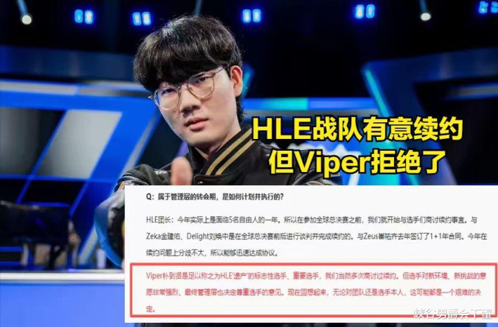 这次Viper选择重回LPL赛区打比赛就是想要再夺冠的,据最近的消息称,HLE战队也是极力要续约Viper的,但是Viper想要换一个环境打比赛,所以选择了实力强劲的BLG战队,而HLE战队后手才选择了Gumayusi选手。