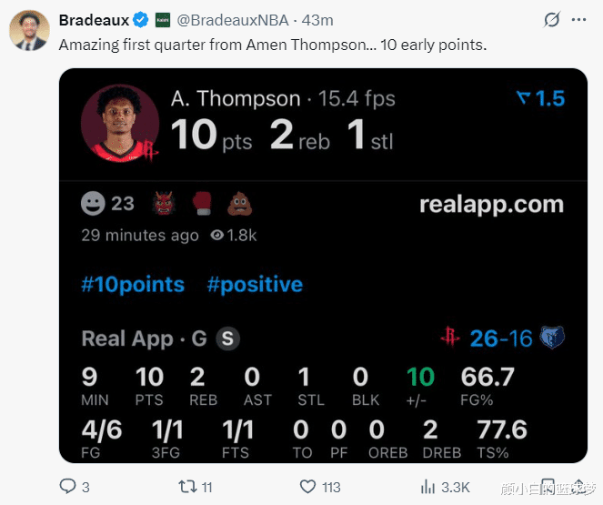 阿门又是火箭队的先锋官,他在幽灵位的空切太厉害了,灰熊多次漏掉他,首节6中4,三分1中1拿到10分2篮板1抢断,真实命中率77.6%。