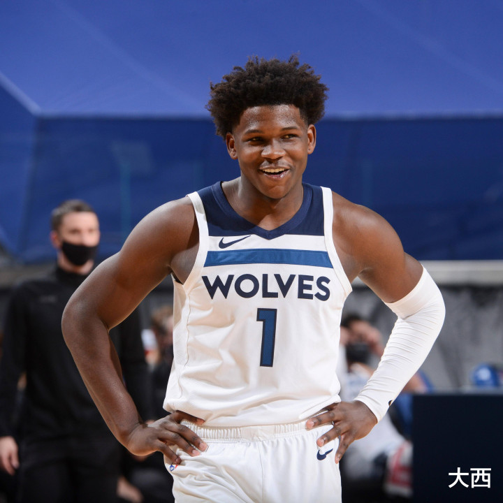 爱德华兹生涯起点很高,他是为数不多的状元分卫。1米93的身高,历史级别的运动能力,技巧也是非常细腻。森林狼选中他之后,就把他当做绝对核心培养。所以菜鸟赛季,爱德华兹就有无限开火权了,交出了场均19.3分的答卷。二年级时,已经可以轻松砍下场均21.3分,成为了一流的得分手。