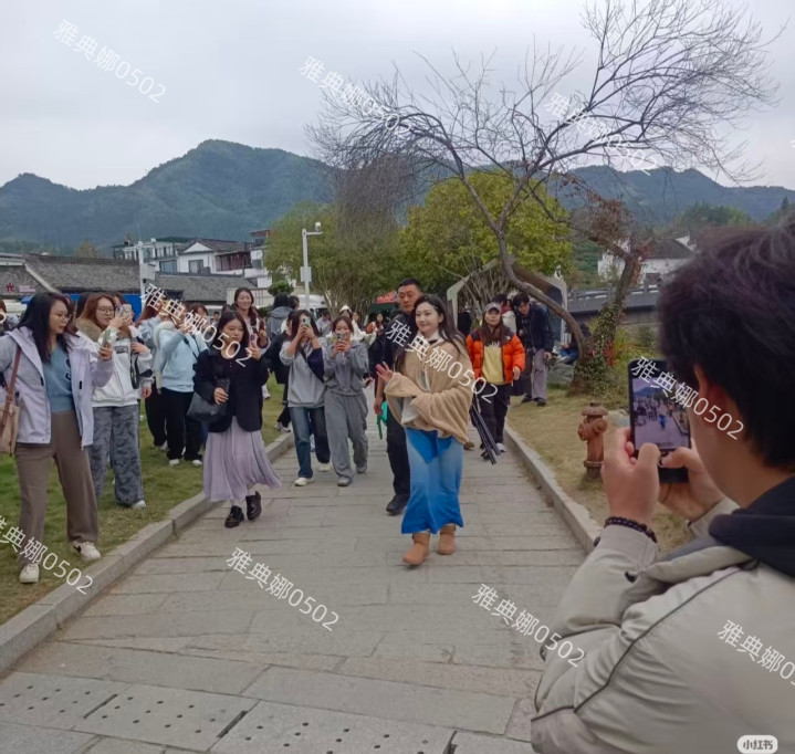 徽州唐模景区遇到景甜了,浑身上下穿了一身白衣的她,真人皮肤白到发光气质好干净好美。
